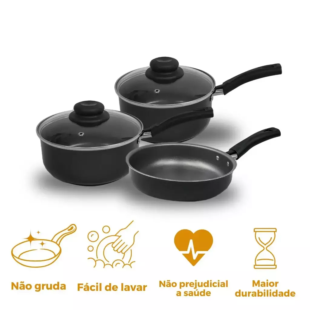 Eleve sua experiência culinária com o nosso exclusivo Kit Panelas c/ Frigideira 3 Pçs Premium Antiaderente . Este conjunto de panelas e frigideira é a escolha perfeita para cozinhar com praticidade e estilo.