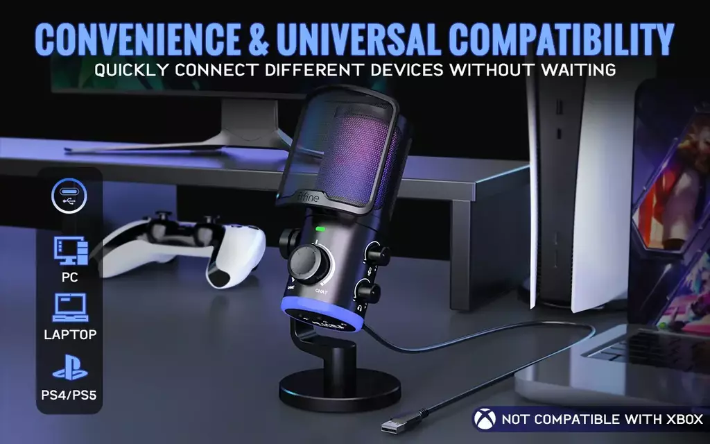 Este microfone USB é compatível com laptop Windows PC, Mac e PS4/5, esteja você jogando ou fazendo streaming, este microfone é o companheiro perfeito.